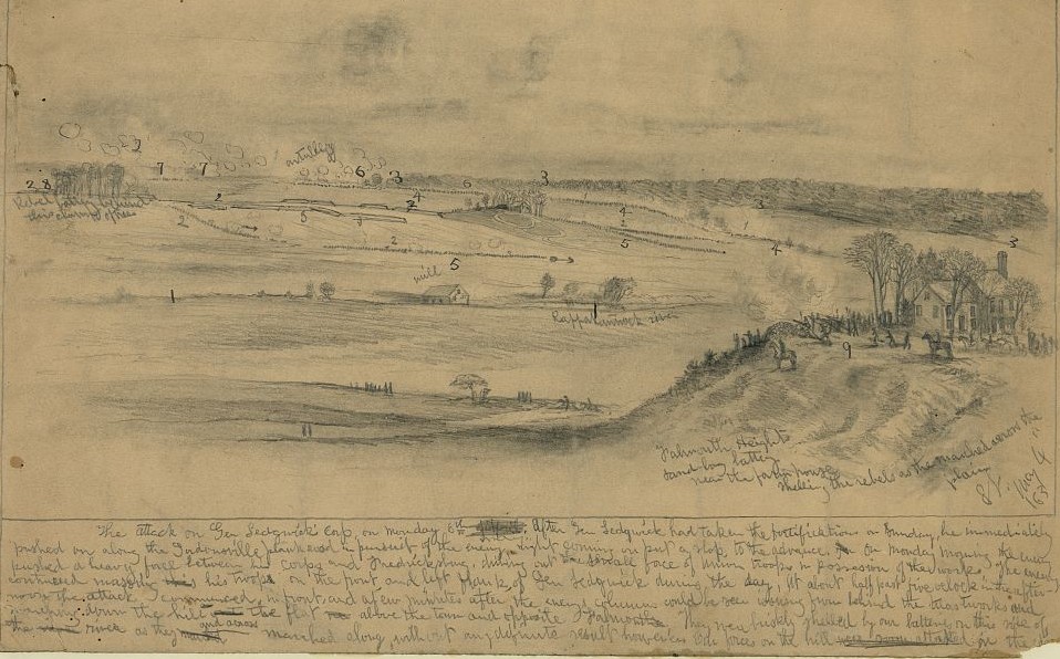 Two assault columns came out of Fredericksburg on May 3. Four regiments advanced up William Street, as described above. Two regiments came out of town by way of Hanover Street. Those units were the 7th Massachusetts and the 36th New York, of Colonel William Browne’s brigade, which was a part of Major General John Newton’s division.