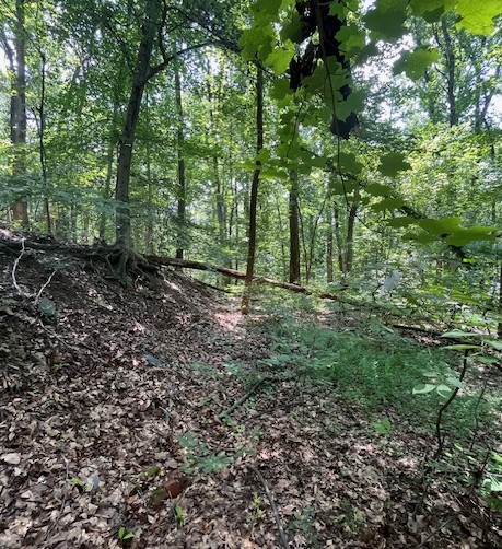 The historic Banks’ Ford road extends uphill from River Road before dropping down toward the river crossing, as seen in the sketch.